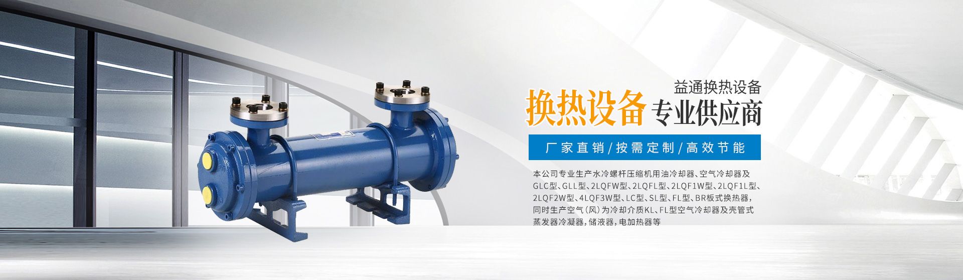 我們公司年來從事:管式冷卻器、板式換熱器、冷卻器組等換熱產品產品,擁有豐富的 行業經驗;公司產品換熱效率高,結構緊湊,輕而堅固、使用壽命長等特點,應用于液 壓設備、電力設備、機床、動力設備、工程機械、空分、石化、制冷空調等領域